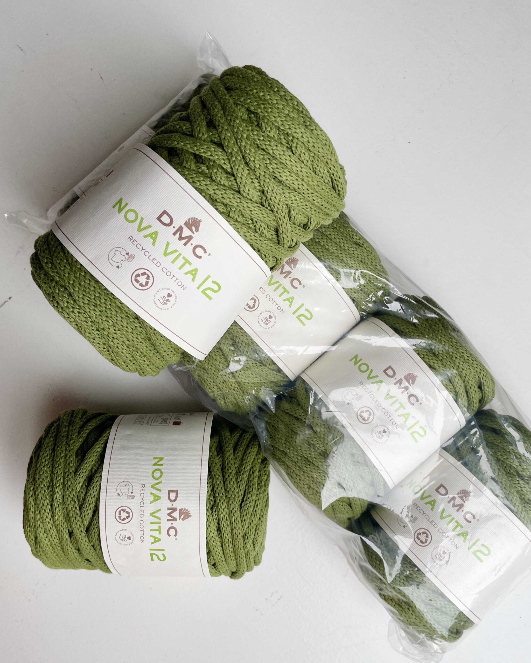 Bundle med 6 ruller flettet macramé snor i farven army — velegnet til macramé, tasker, kurve og større kreative projekter.