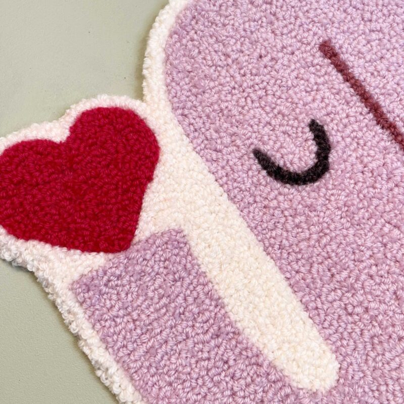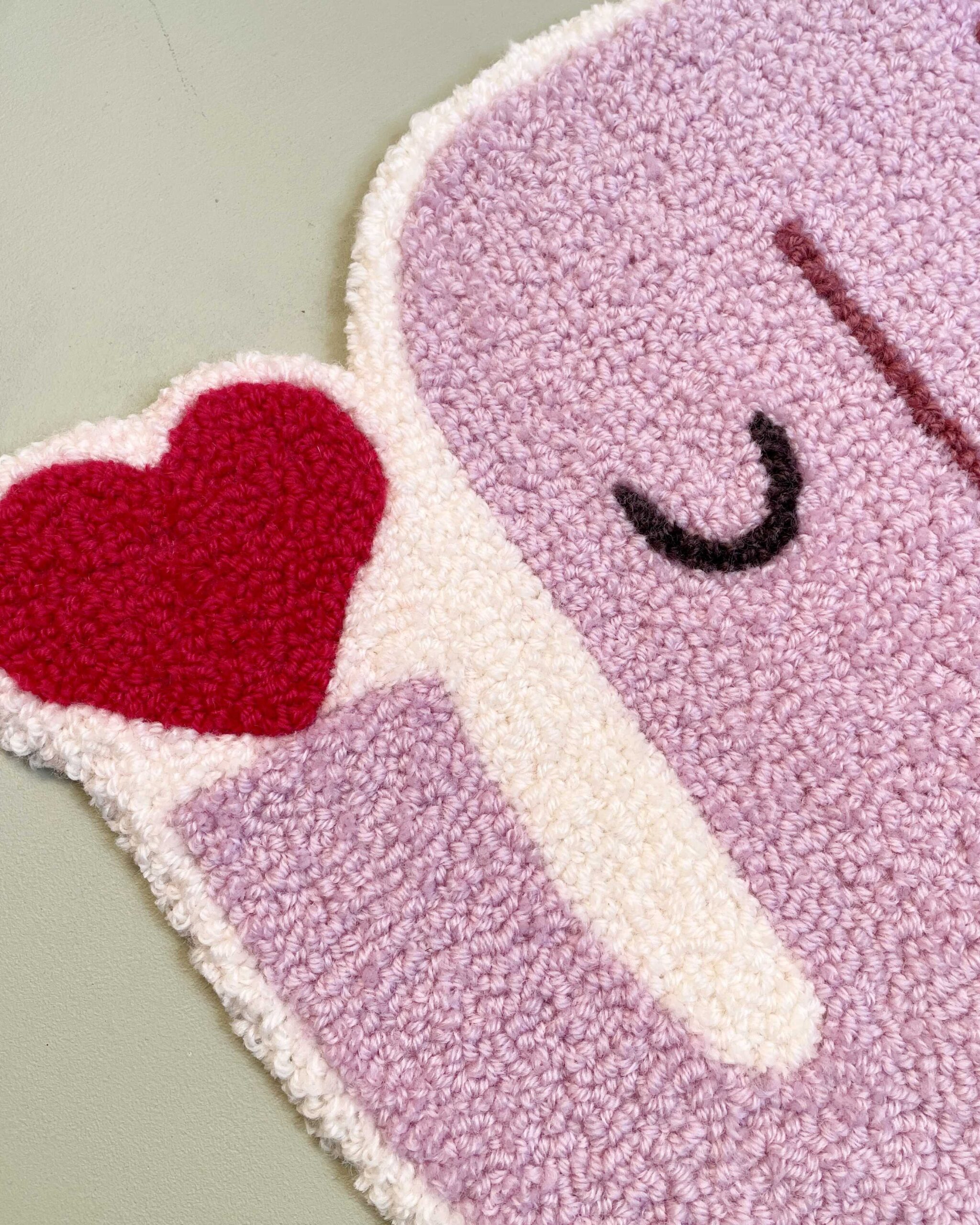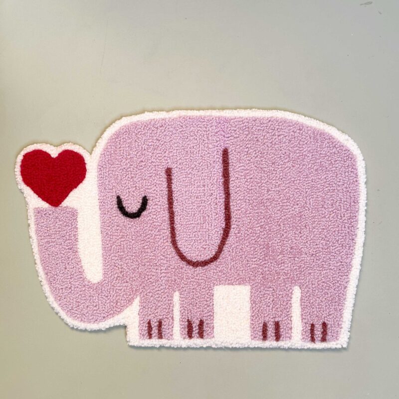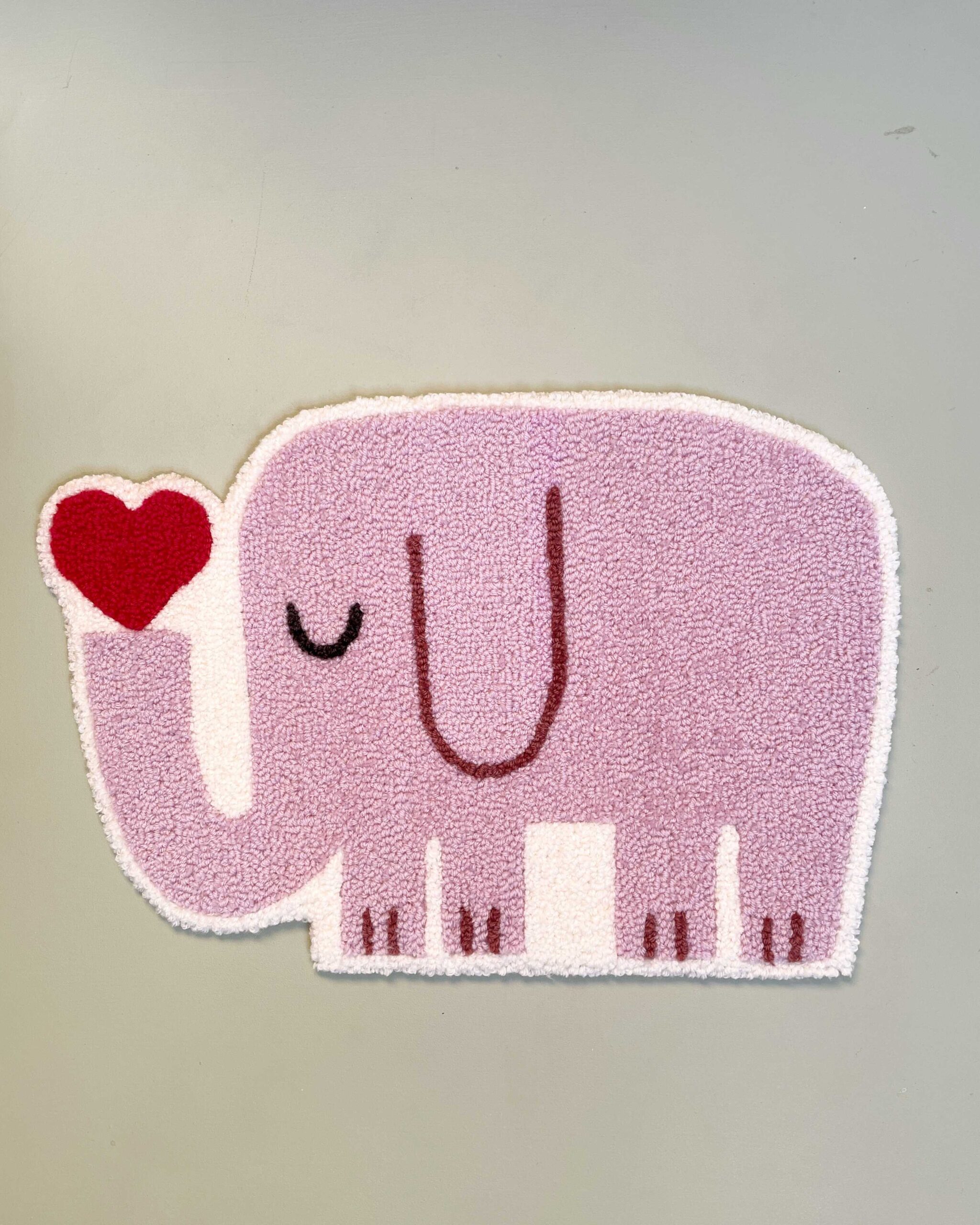 Den tuftede elefant er håndlavet i blødt uldgarn og fungerer som et dekorativt element på børneværelset. Den kan hænge alene som et roligt blikfang eller indgå sammen med andre værker og skabe en personlig væg, der vokser med barnet.