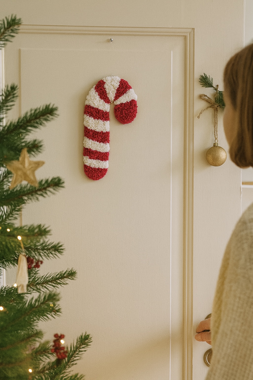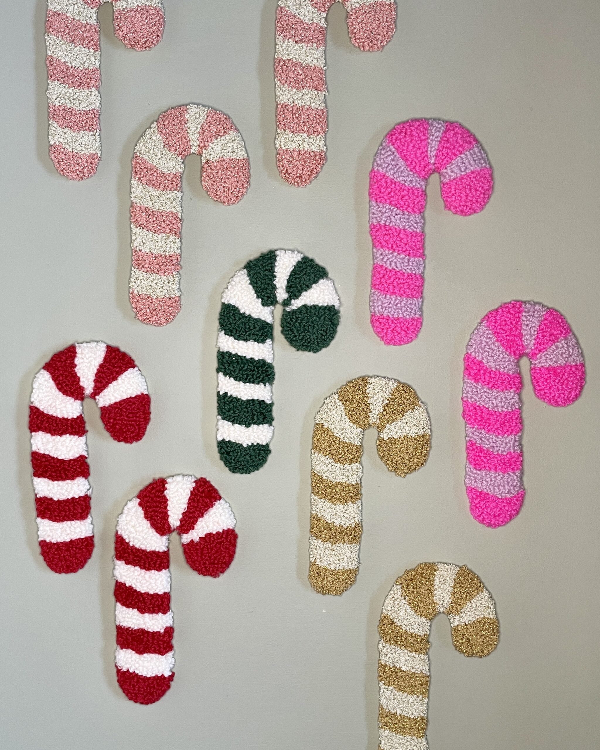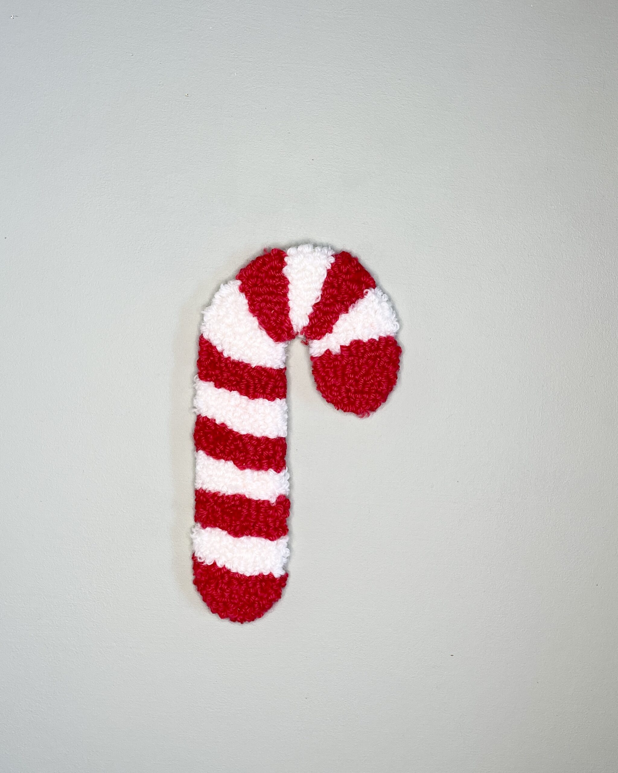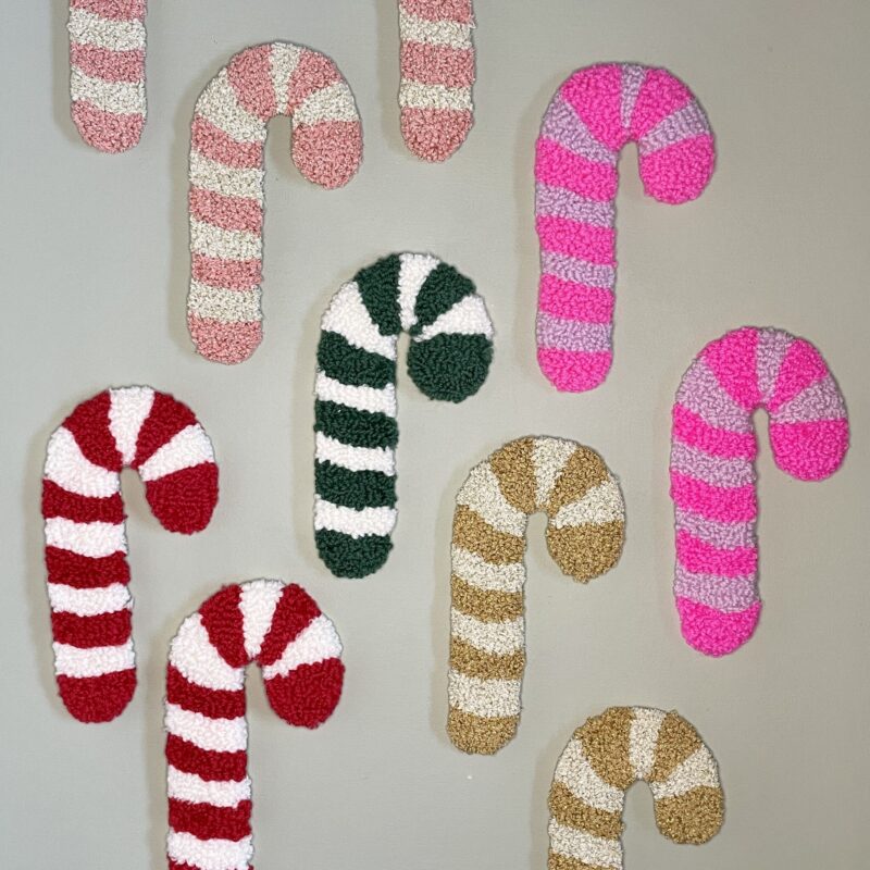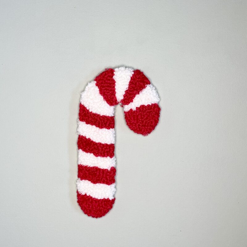 Julestokken er tuftet i blødt uldgarn med danellanål, hvilket giver en taktil overflade og et levende udtryk. Den klare, klassiske røde farve og de hvide striber skaber et tidløst, varmt julelook, der passer ind i både moderne og mere traditionelle hjem.